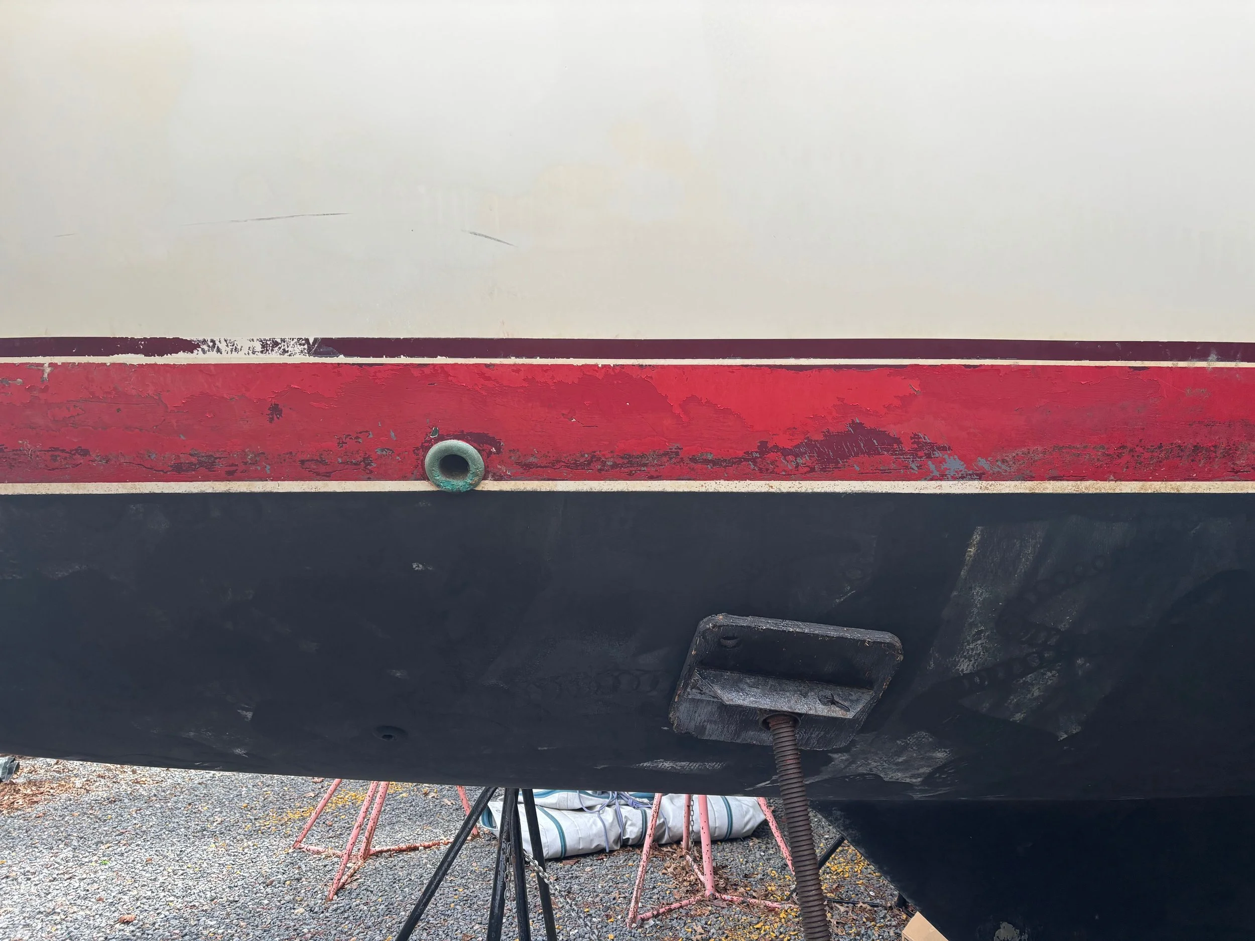 The owners of this vessel are carrying out a sensible long-term plan of a manageable amount of repairs each year. I was recruited in 2025 to repair the damaged lead keel and to repaint the boot top and accent stripes.